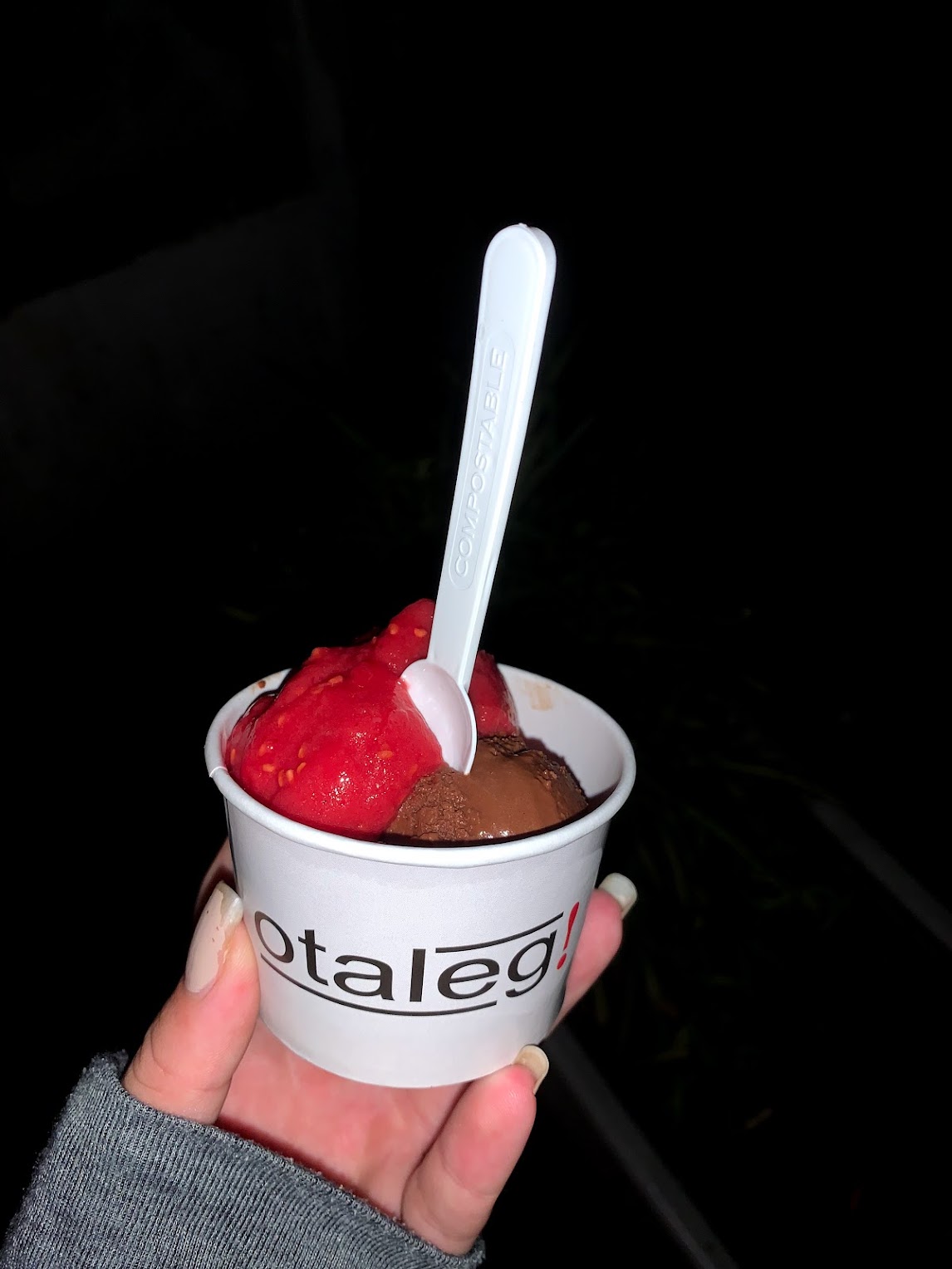 One of my favorite flavors that I have tried at Otaleg is the figs with almonds and chocolate chips. The based is fig flavored and still has the little crunchy seeds that make figs so interesting. The almonds also provide a great textural aspect and the chocolate chips, although they are really sweet, pair perfectly with the mild fig flavor.